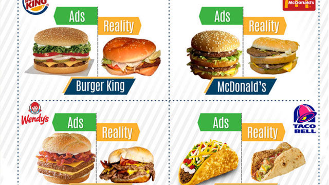 With fast food ads, look can be deceiving. While any food photography employs a food stylist, some companies are less honest when it comes to what they show, versus what they serve. For example: Many real-life fast food hamburgers are not nearly as appealing as they look in commercials. But burgers aren’t the only culprit. For Subway $5 footlongs fell short of their 12-inch promise, and got the company into hot water. “The suit filed under the New Jersey Consumer Fraud Act alleges it’s a deceptive practice for Subway to advertise its large sandwich as a footlong.”